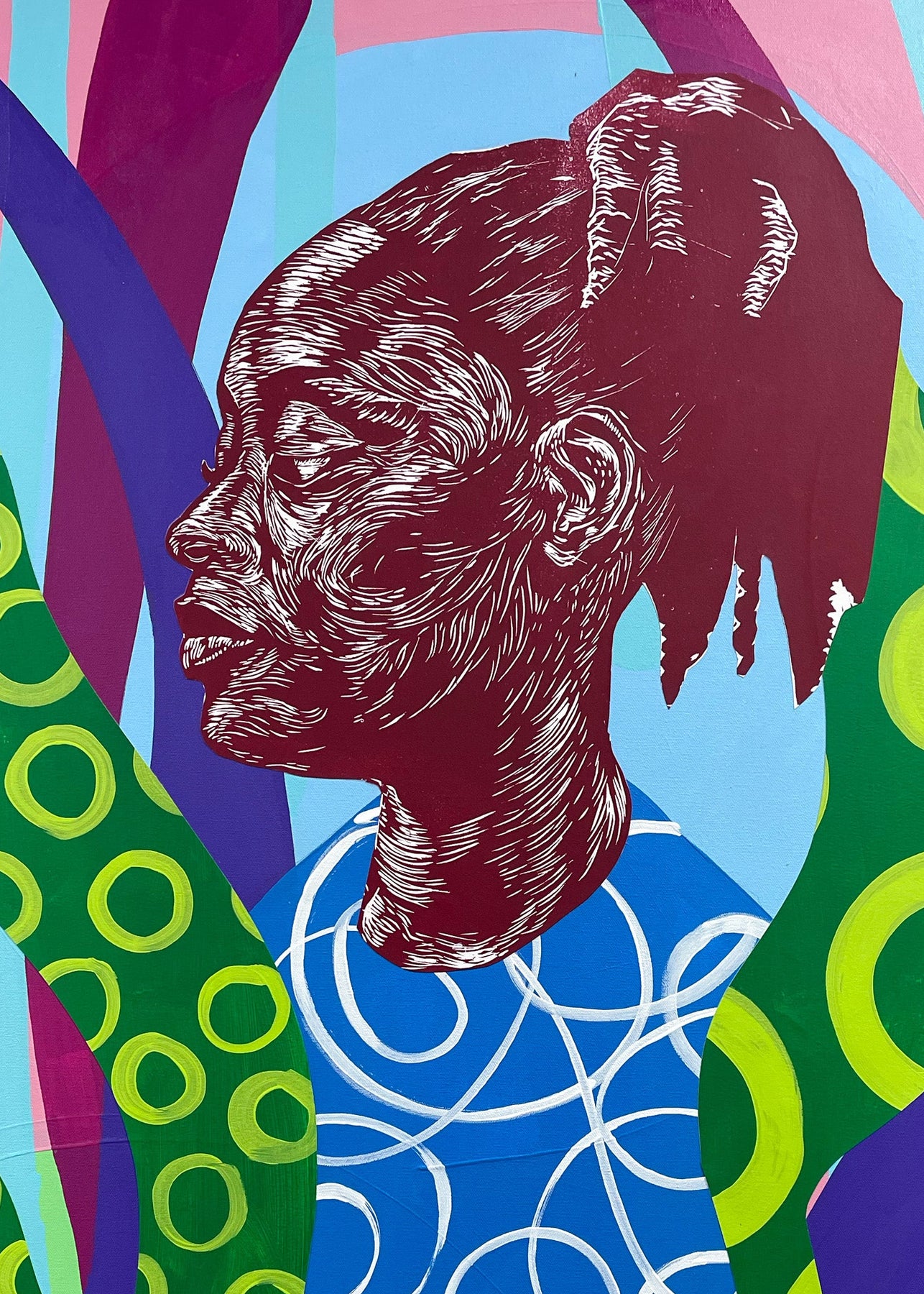 Jamaal Barber was born in VA and raised in Littleton, NC. At a young age, he was fascinated by the illustrations in children's books and the colorful images in comic books. He started drawing on the back of his tests in elementary school and was soon drawing on any material that he could find. He finally decided to become an artist after reading about the life of Romare Bearden in high school. In 2003, Jamaal graduated with a BA in Communication Arts from East Carolina University. While in school he won the 2002 JOSA award for drawing and 1st Place in Graphic Design for the Rebel Magazine, the annual ECU student art awards magazine. In 2004, Jamaal moved to Atlanta where he now resides with his wife and two children. He has worked doing graphic design work for Iota Phi Theta Fraternity, Inc. and Spoken Magazine. His fine art painting has been displayed at the Art on 5 and with the Mano-a- Mano art show. In 2013 after seeing a screen printing demo at a local art store, Barber started experimenting with printmaking and has made it his focus. His prints have been included in the Atlanta Printmaker Studio Biennial show and the Hudgens Center For The Arts.