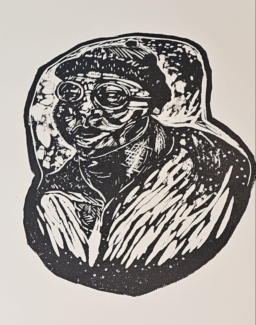9 x 8 inches (image size), linocut print on paper, limited edition of 10 -- unframed
