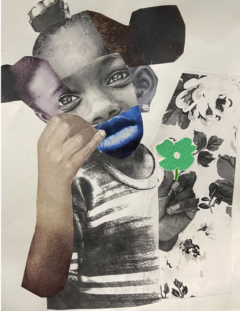 Pentecostal upbringing, with her collage subjects as distinctive versions of her