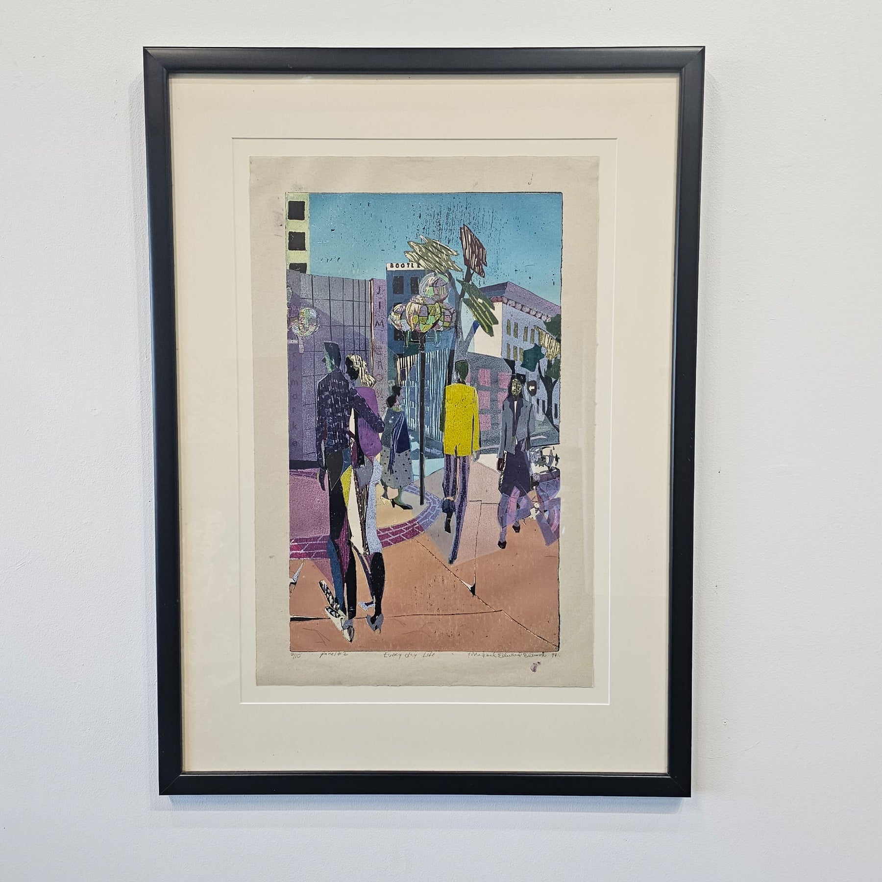 14.75 x 21.75 inches (image size) 24 x 32.5 inches (framed), Color reduction print on paper, limited edition of 10, 1986-- framed