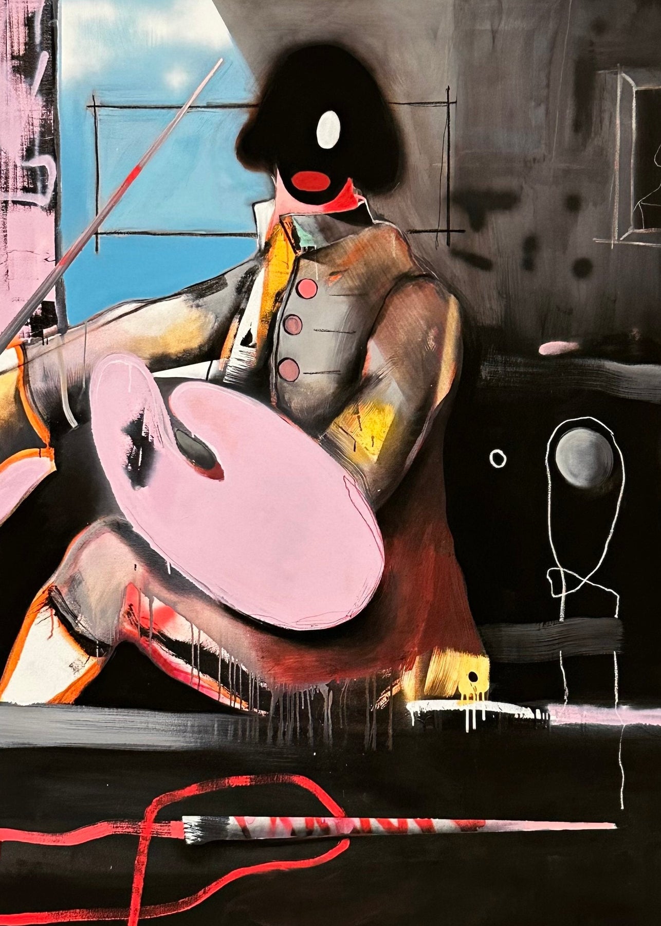 For Marcus Antonius Jansen, rewriting history or at least re-examining it through his personal lens is central to his artistic practice. He understands that history is written by the victors, and that valid dialogue in art history requires multiple perspectives, especially those of black and brown voices who have often been excluded in the discourse of Art History. His subject matter is deeply rooted in formative experiences in both his native Bronx, New York and Moenchengladbach Germany, where he grappled with social upheaval and racism as well as his world travels in his youth. Growing up in the racial and economic paradoxes of the 1970s and 80' in both countries, Jansen absorbed impressions that remain hallmarks of his expressionist style, bridging two worlds with empathy and irony. Graffiti writing, which he discovered as a teenager, taught him to distort and deconstruct traditional paradigms while imagining new ones.