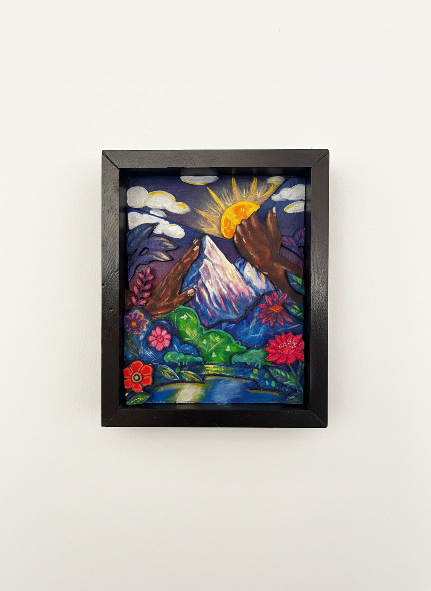 Dontanarious Kelly born in Augusta, GA, and receiving his BFA from Columbus State University, Dontanarious Kelly is a contemporary artist whose work explores the intersection of personal identity, philosophy, and human connection. With a narrative-driven methodology, Kelly’s art reflects deep introspection and the exploration of one’s own story. His pieces invite viewers to engage with the process of self-discovery and encourage a shared understanding of the universal experiences that connect us all. Through painting, mixed media, and sculpture, Kelly’s art is both an intimate reflection and an invitation for others to reflect on their own journeys of growth and connection.