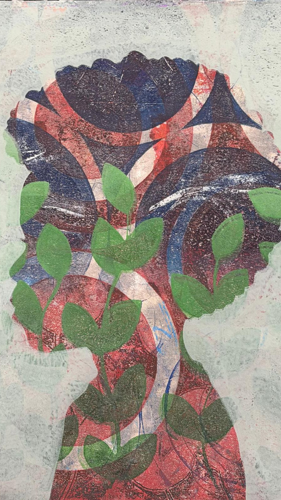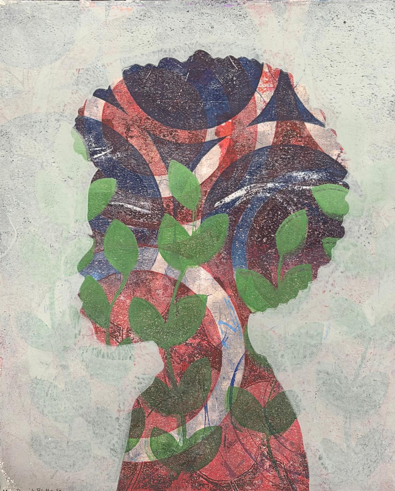 12 X 14 inches, acrylic monoprint on bristol paper, 1/1