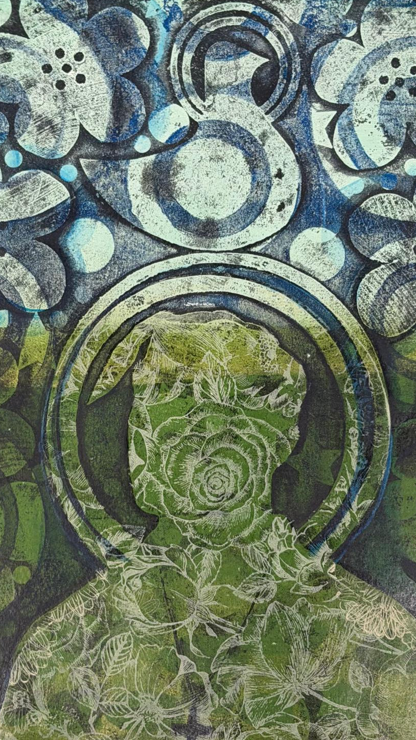 12 X 14 inches, acrylic monoprint on bristol paper, 1/1