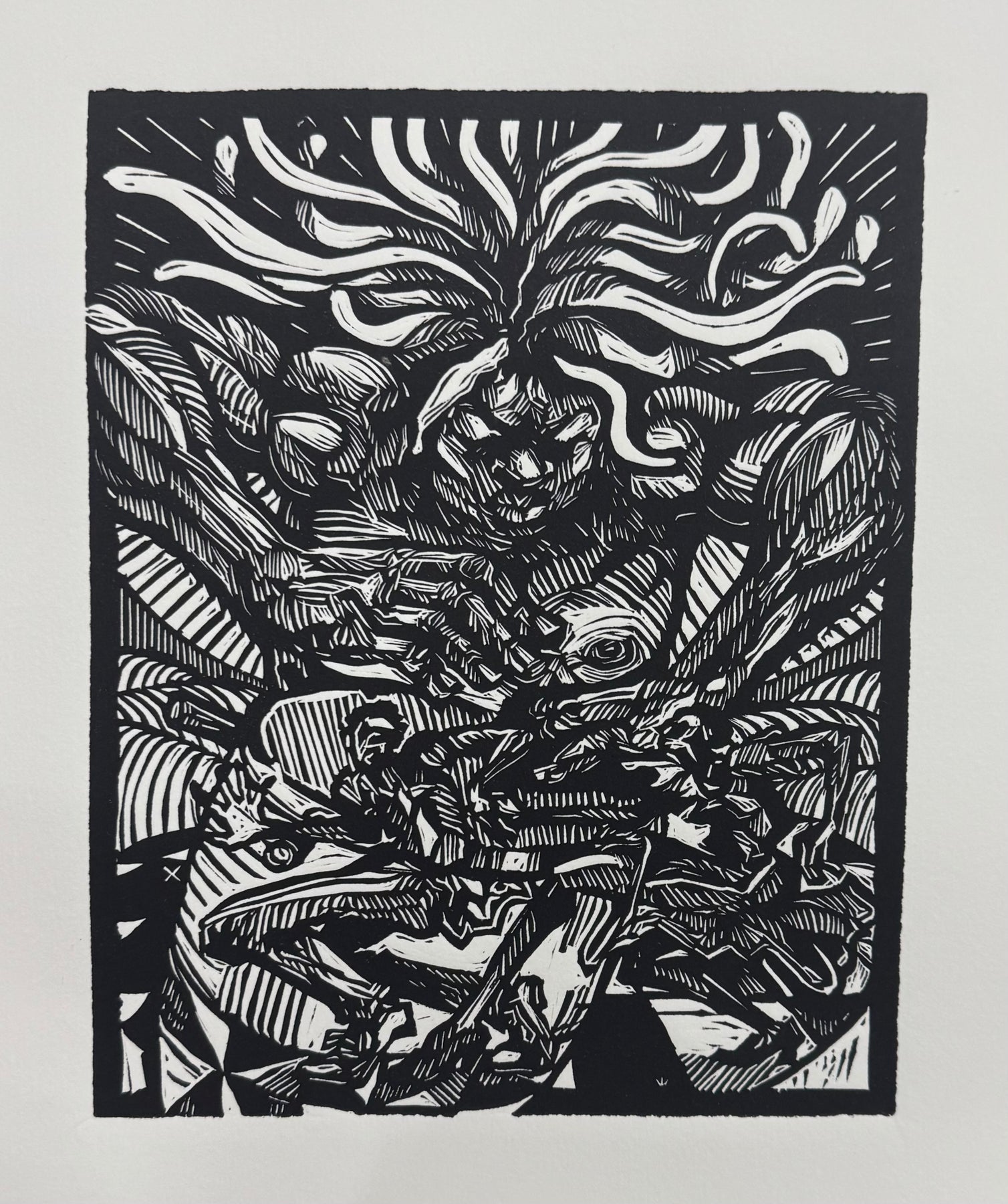 6 x 8 inches (Image Size) linocut on paper, limited edition of 10-- unframed