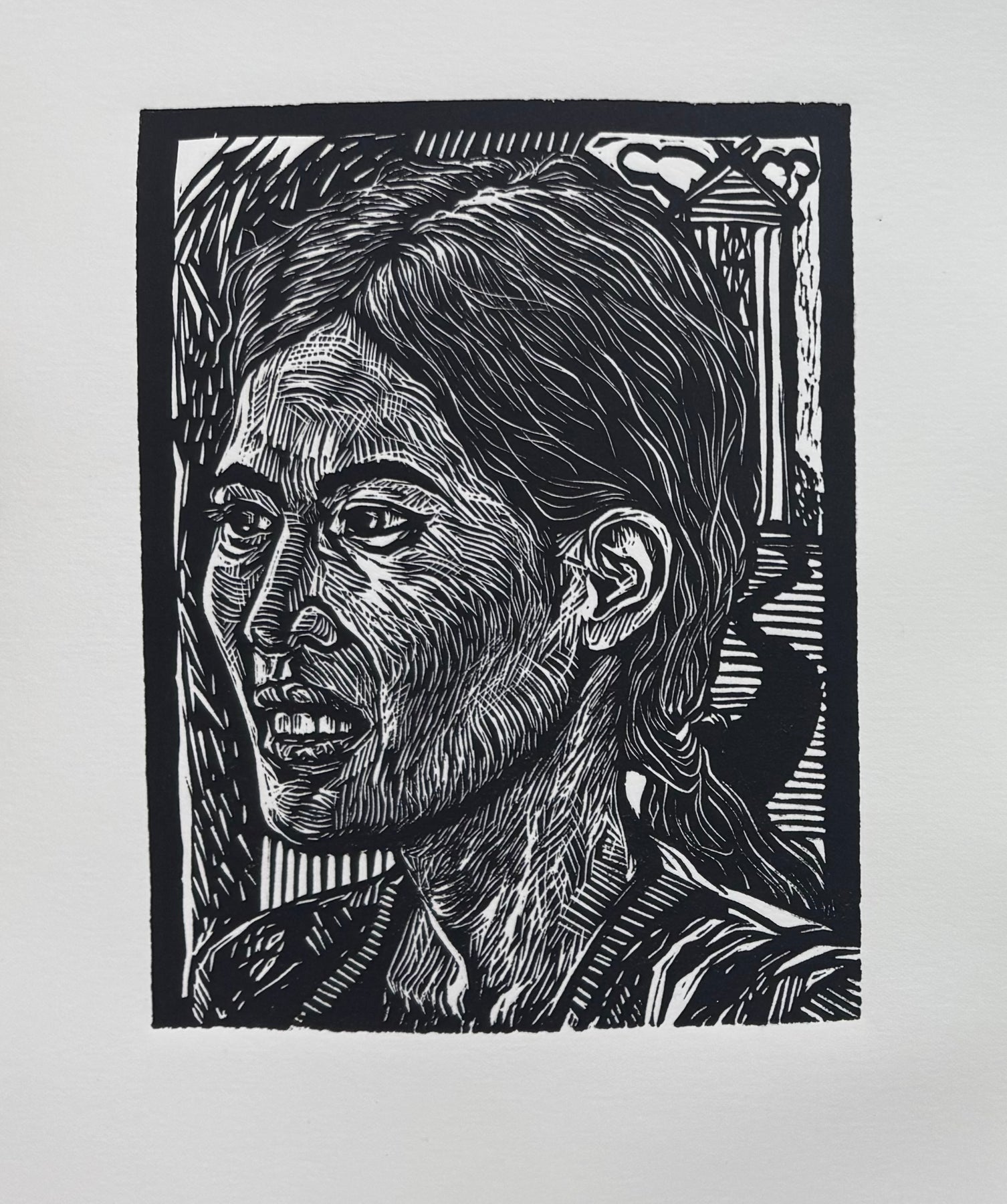 6 x 8 inches (Image Size) linocut on paper, limited edition of 10-- unframed