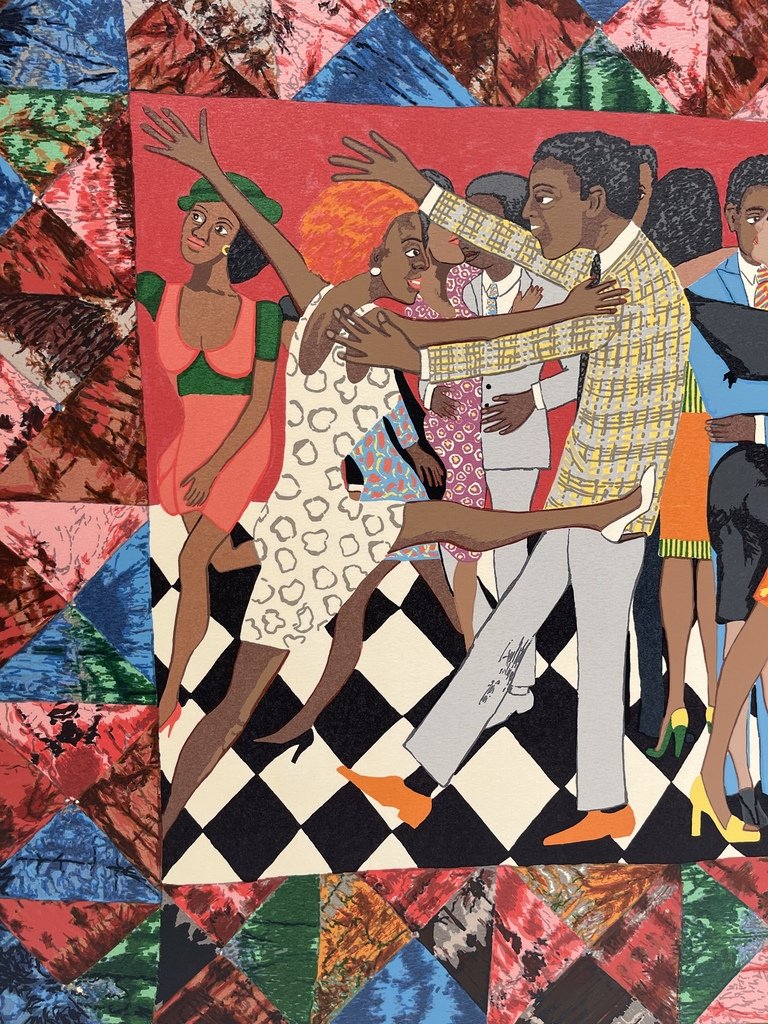 "Groovin' High" by Faith Ringgold 32 1/2 x 44 in (framed) 82.6 x 111.8 cm, silkscreen on paper, limited edition #312/425 --framed