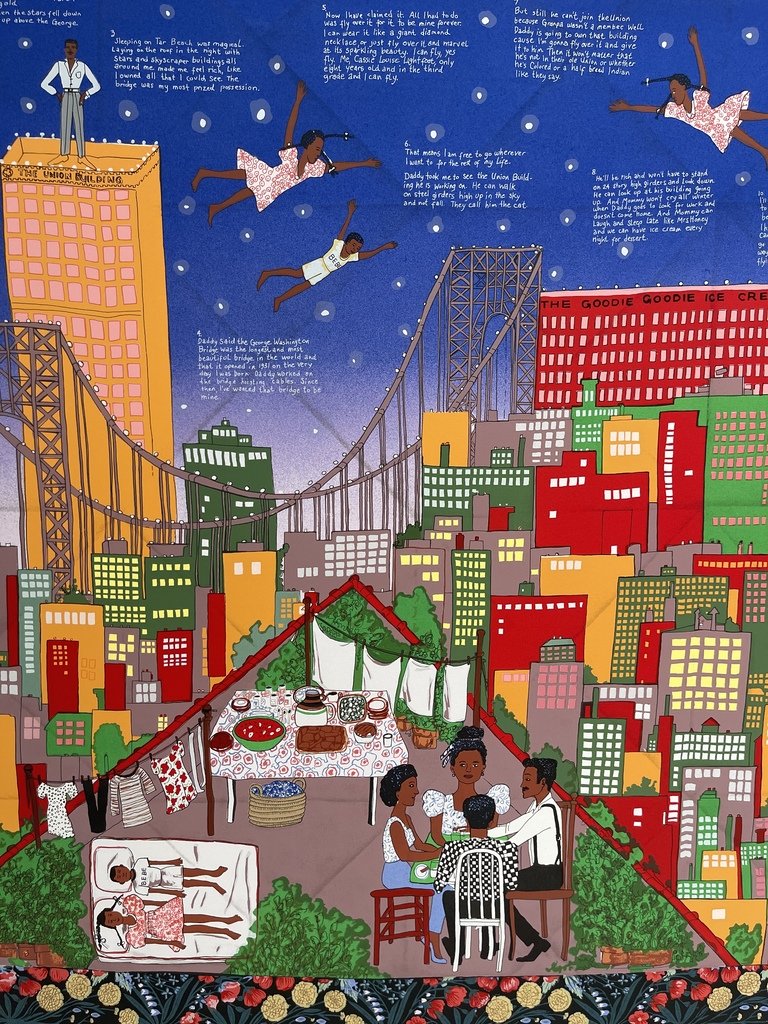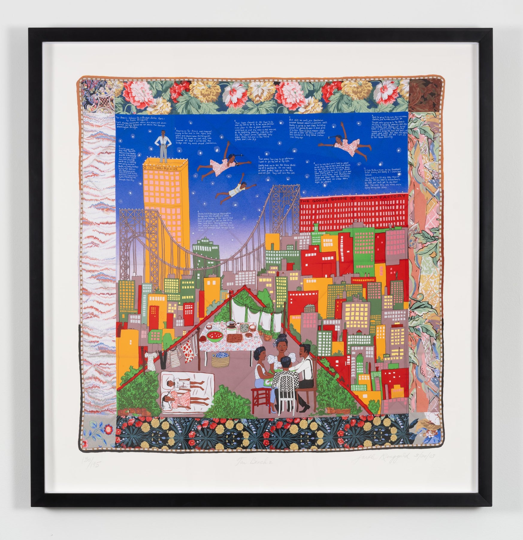 "Tar Beach 2" by Faith Ringgold 32 1/4 x 33 3/4 in (81.9 x 85.7 cm) silkscreen on paper, limited edition #87/195, 2003 --framed