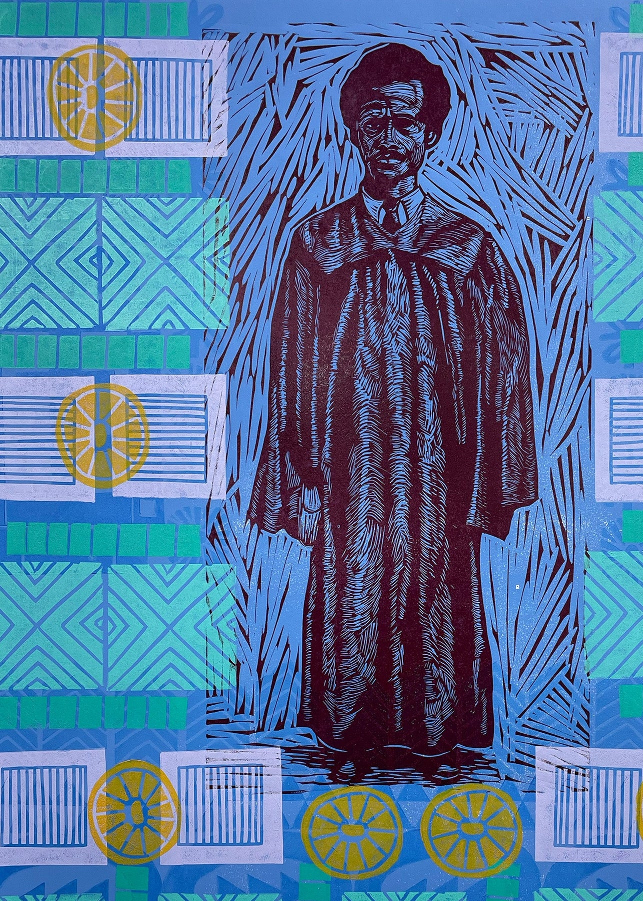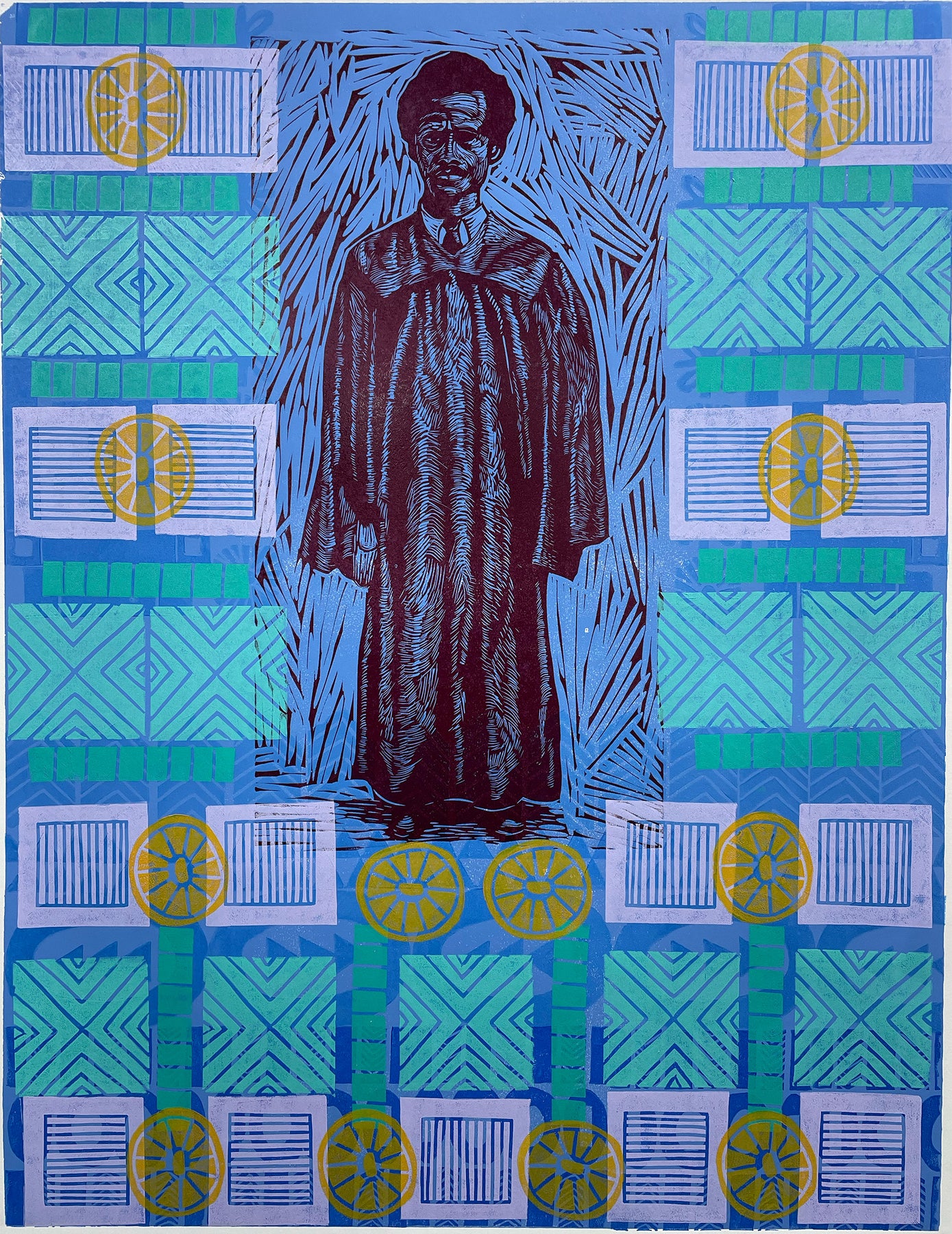 Jamaal Barber was born in VA and raised in Littleton, NC. At a young age, he was fascinated by the illustrations in children's books and the colorful images in comic books. He started drawing on the back of his tests in elementary school and was soon drawing on any material that he could find. He finally decided to become an artist after reading about the life of Romare Bearden in high school. In 2003, Jamaal graduated with a BA in Communication Arts from East Carolina University. While in school he won the 2002 JOSA award for drawing and 1st Place in Graphic Design for the Rebel Magazine, the annual ECU student art awards magazine. In 2004, Jamaal moved to Atlanta where he now resides with his wife and two children. He has worked doing graphic design work for Iota Phi Theta Fraternity, Inc. and Spoken Magazine. His fine art painting has been displayed at the Art on 5 and with the Mano-a- Mano art show. In 2013 after seeing a screen printing demo at a local art store, Barber started experimenting with printmaking and has made it his focus. His prints have been included in the Atlanta Printmaker Studio Biennial show and the Hudgens Center For The Arts.