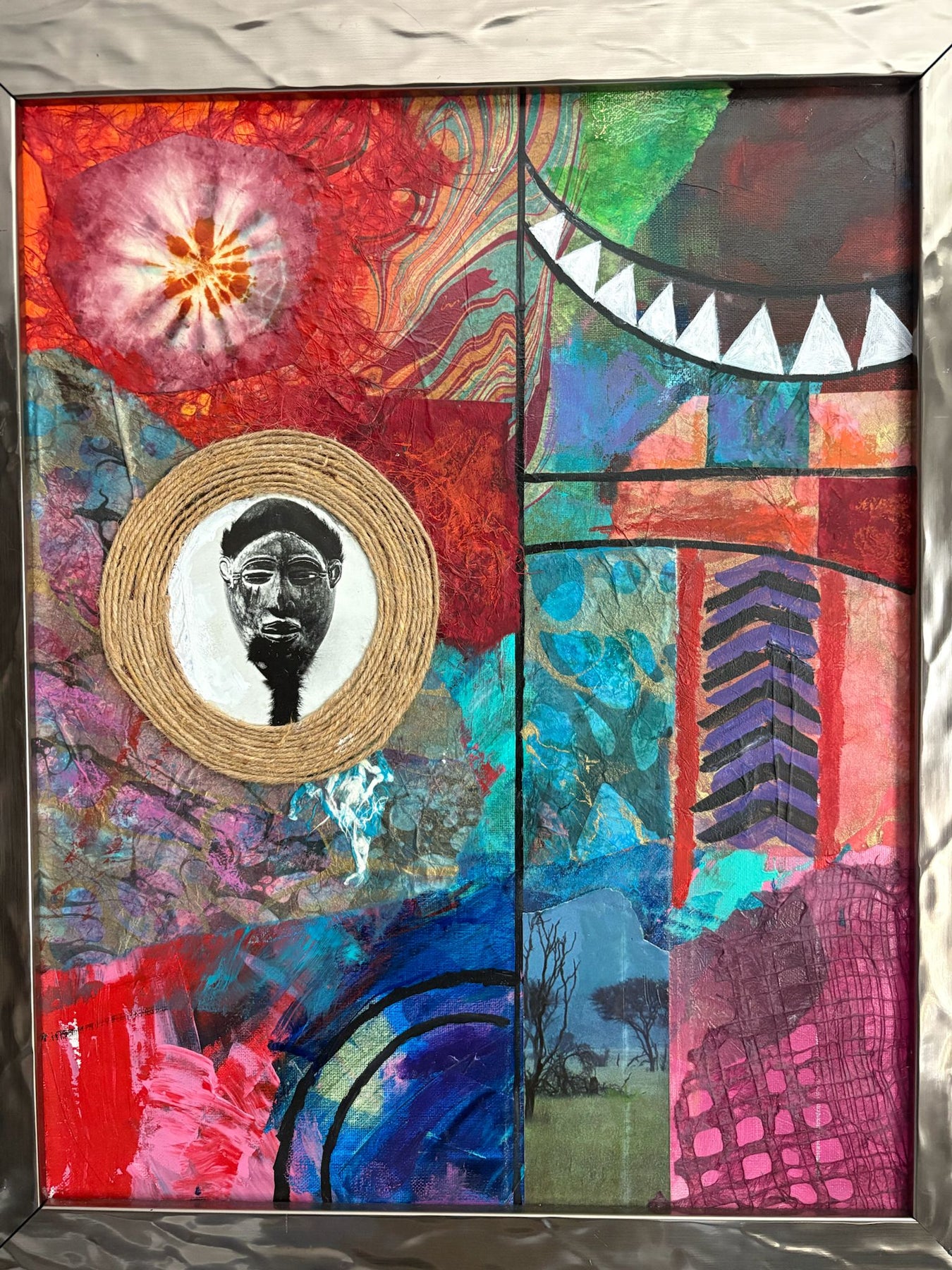 15 1/2 x 19 1/2 inches, mixed media on canvas, original-- framed