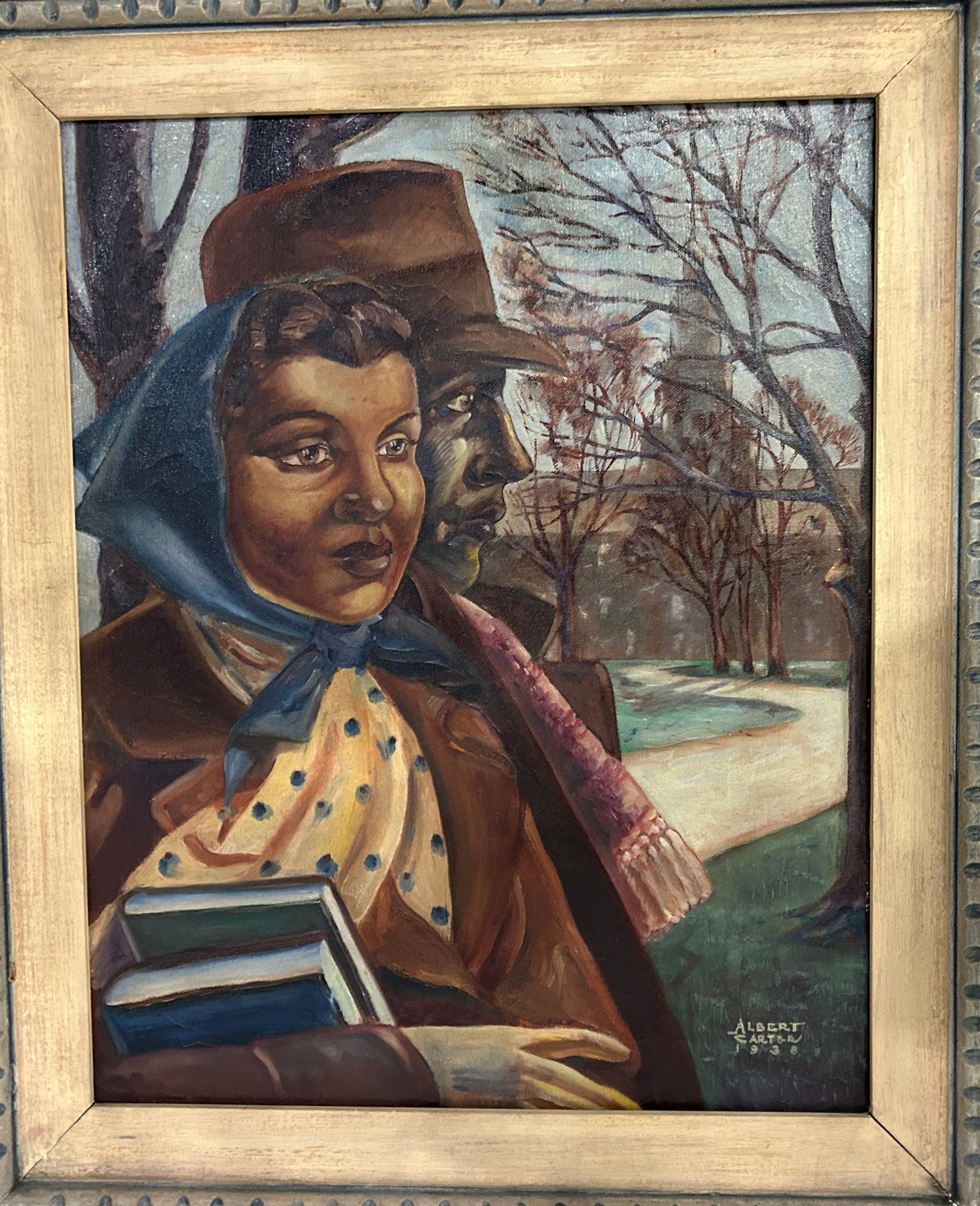 19 1/2 x 23 1/2 (framed size) | 15 1/2 x 19 1/2 (image size) inches, oil painting on canvas, original (1938) -- framed